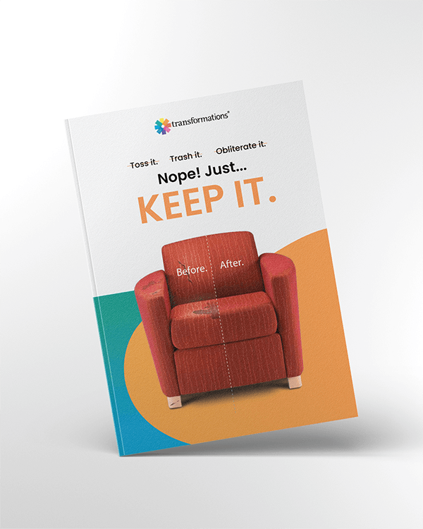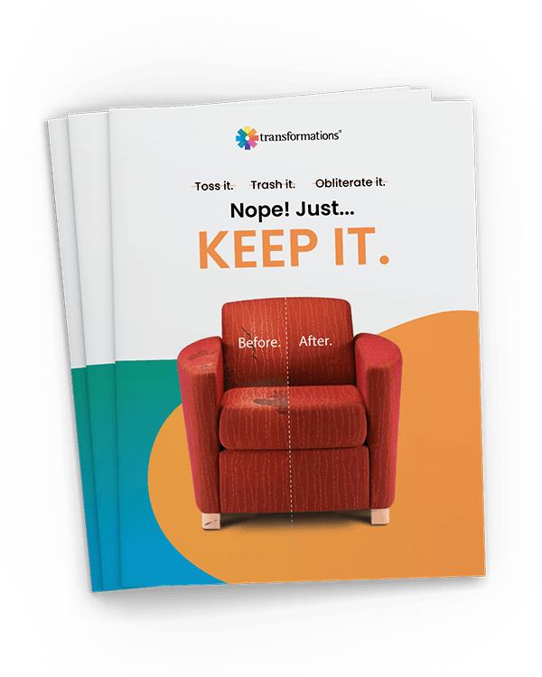 Traditional furniture has a pretty short lifespan. With Transformations, you can swap out broken parts and re-cover fabric when you’re ready to update a common space.