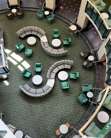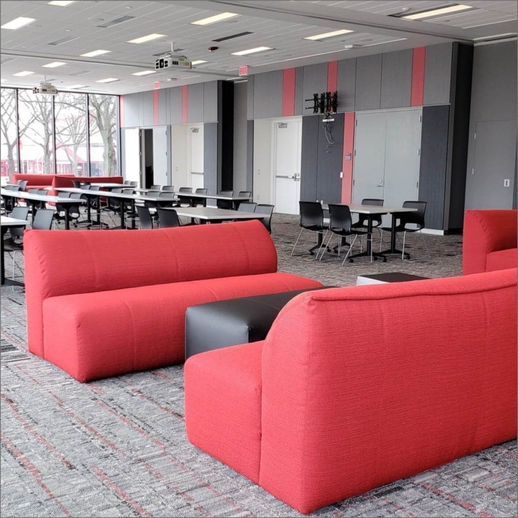 Yes! Transformations can help you brand your space by adding custom embroidered logos to select furniture pieces. Talk with your sales representative about options.
