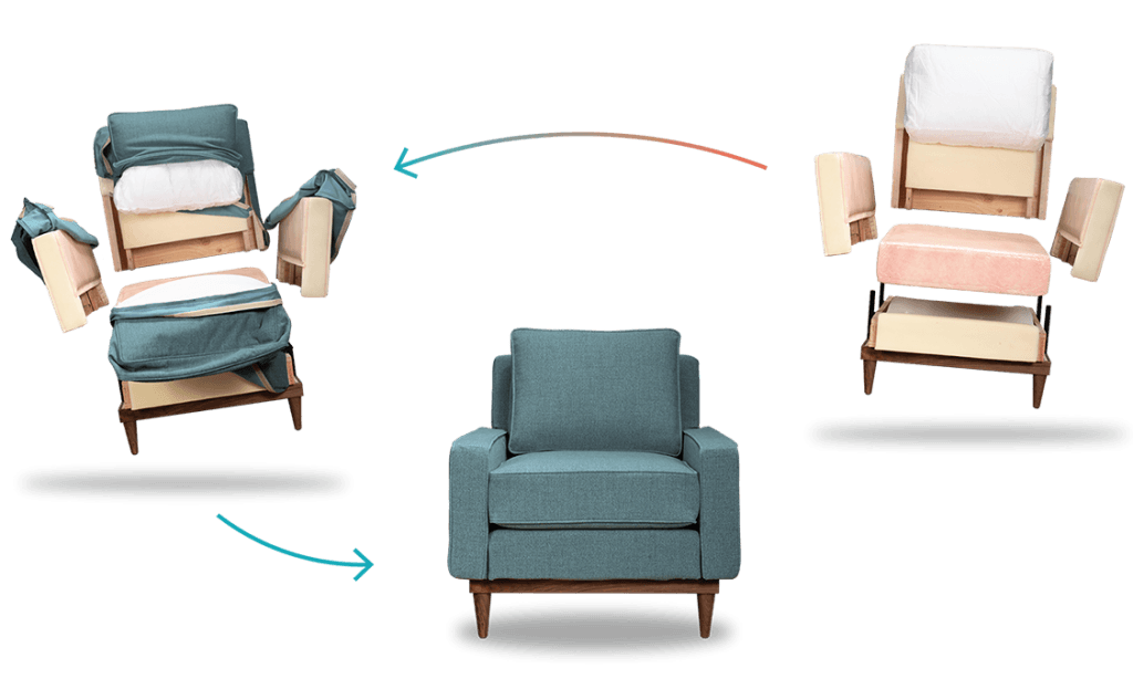 With traditional furniture, when there's a stain or broken part, consumers either have to live with the eyesore, or toss it and replace it.